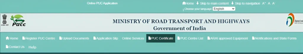 • होम पेज पर मेनू में “PUC Certificate” के विकल्प को क्लिक करें।