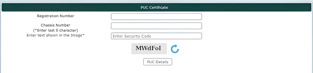 • अब अपना Registration Number, Chassis No और कैप्चा कोड सही से भरकर PUC Details पर क्लिक करें।